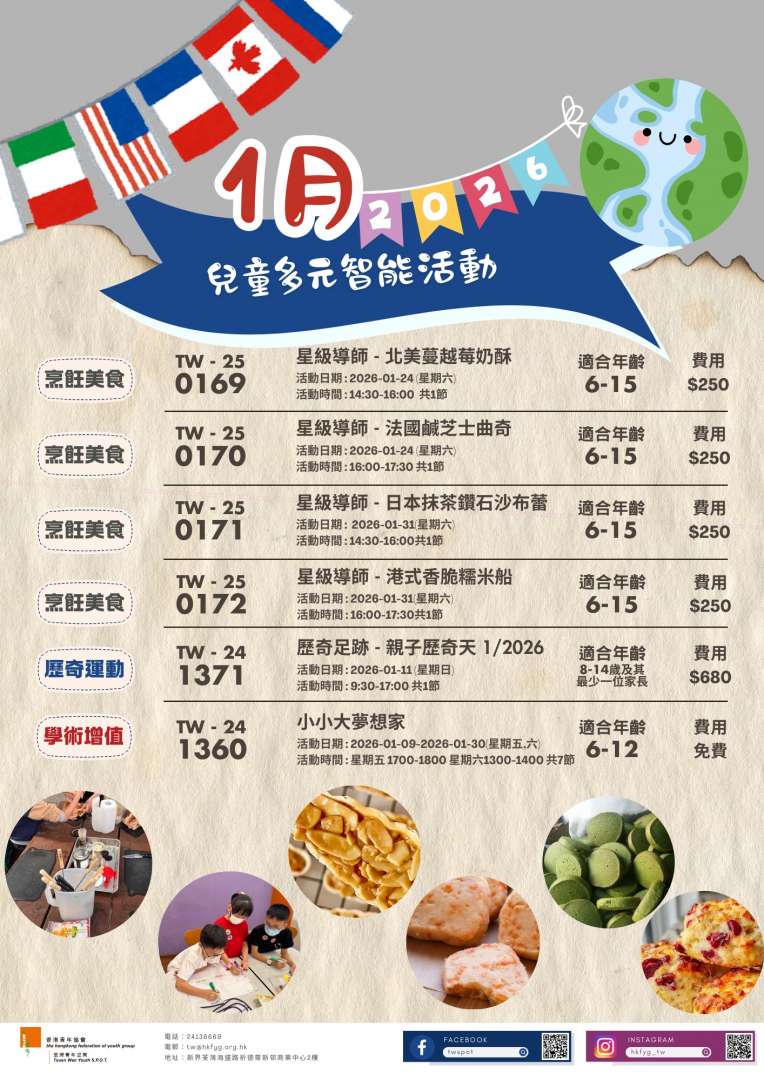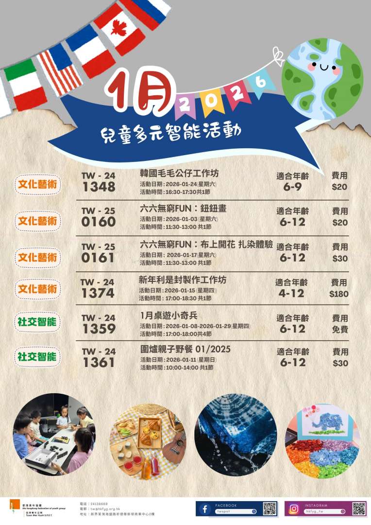 1月pop up 工作坊嚟啦!啱晒4至15歲嘅青少年參加~